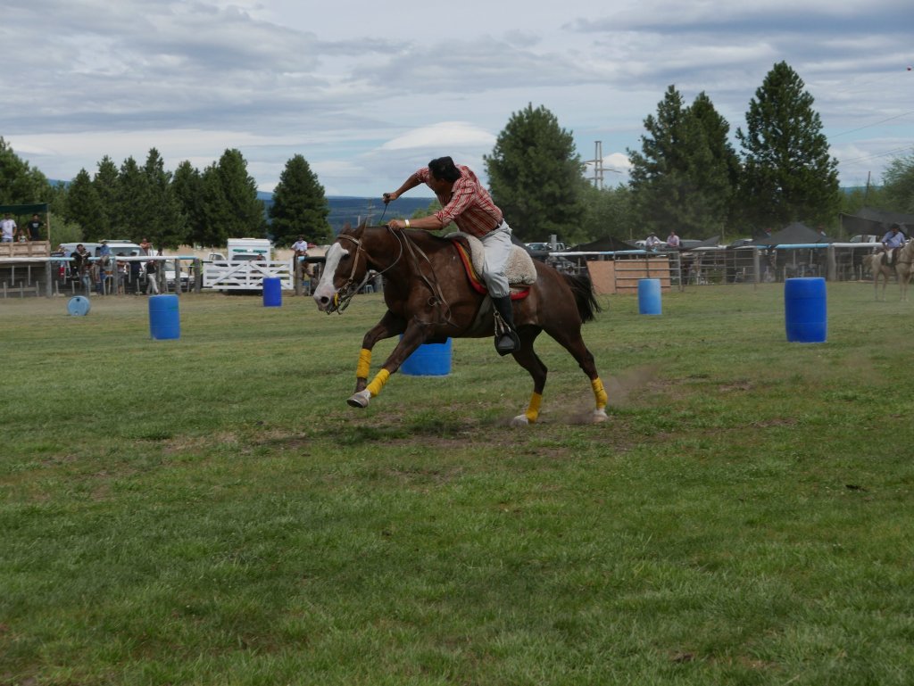 The final event we saw is best described as horse slalom racing. Three mounted horses went head to head around barrels up and down the arena before a final sprint to the finish. A barrel knocked over meant instant disqualification, and there were various heats today before the final tomorrow. The riders varied enormously in age and size and one of the most impressive was a young female rider who seemed to be one animal with her horse and easily made it through.