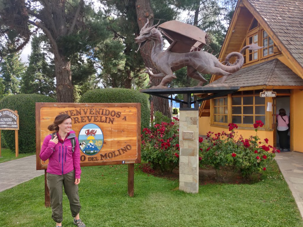 We stopped for lunch on a track entrance with a good view of the valley and tucked into some delicious Chubut cheese, which tasted like a cross between Feta and Halloumi, with added herbs. It was then a lovely cruise down to Trevelin, the valley feeling more and more Welsh as we progressed, passing arable fields and willow trees with rolling pasture hills behind, and some beautiful lodges advertising great skiing in winter (not quite so Welsh).