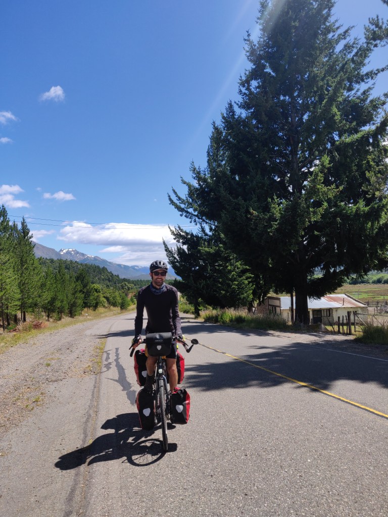 Trevelin itself was not quite the picture postcard town described in some travel guides, but looked to contain lots of interesting shops and the usual pleasant central circular lawn and pine trees. Arriving here we were greeted by a very angry dog leaping up snarling at a motorbike before slinking away, and we cautiously but promptly pedalled to camping El Chacay a few blocks south. Unpacking our tent in the orchard site, we were offered the table space of a Argentinian called Geronimo who was leaving shortly. He was shocked to discover we hadn’t yet tasted Mate tea and immediately showed us how to drink it from his gourd, made from a dried squash. Very confident, he assured us that the ripio of Los Alerces was nothing compared to the crossing route to Chile and Futaleufu, and that the horseflies similarly were mere midges compared to those of Chile. Somewhat dismayed but grateful for the tea we pitched camp.