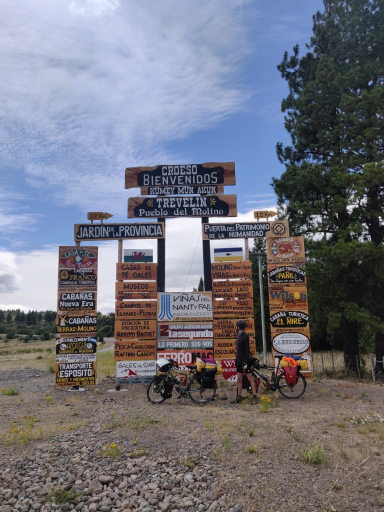 Further south, the landscape expanded even more and started to feel how we imagine Montana to be. Just before Laguna Terraplen, Robbie saw a large bird take off from some road kill, that looked quite different from the ubiquitous Chimangos. We checked Hannah’s laminated fauna flora guide and identified it as a Southern Crested Caracara. Soon we passed the turn off for Esquel (marked with an enormous sign board for all the wonders of Trevelin) and entered the valley of Rio Percy and the long descent to Trevelin.