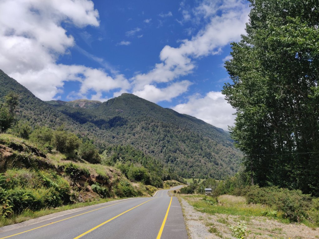 From la Junta, it was a cruisy 45km ride on some long straight stretches south-southwest towards Puyuhuapi. We passed fields of cows to the west, wild flower verges, and wooded slopes to the east, with the occasional waterfall for good measure. By 2.30 found a tidy campground who allowed us to use their picnic tables for lunch.
