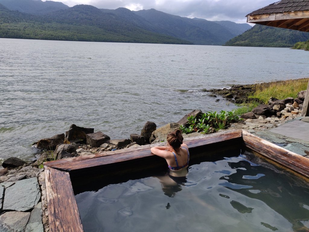 The other pools were considerably hotter with scalding hot water jetting in that we narrowly avoided. Sweating after five minutes we both went for a quick chill in the sea whilst the Chilean boy chatted to the New Zealander. Unfortunately, he spent a bit too long chatting and being skinny badly overheated, fainting on the side. Hannah soaked a towel in sea water and it was put on his head, which eventually did the trick and he was led to the showers by his relieved parents. We left soon after, feeling thoroughly relaxed, and cycled back to Puyuhaipi to cook some pasta dinner with local wine, and hunkered down for more rain overnight.