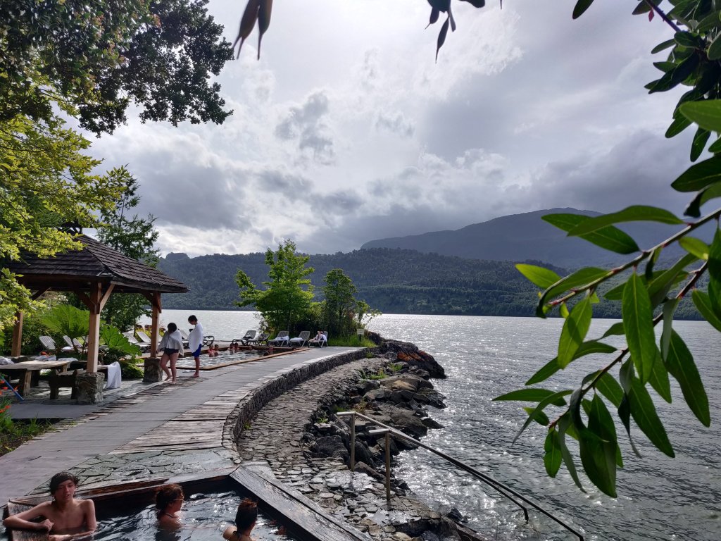That afternoon we headed south 7km to sample the famous hot springs just off the Carretera. Our unloaded bikes feeling strangely light and skittish, we flew down the road, narrowly missing a few barky pet dogs defending their house very enthusiastically. The hot springs had been captured and turned into a small complex of pools of varying temperatures immediately next to the sea. We started in the largest and coolest and met a girl from New Zealand who overheard us comparing hot springs, and a pair of young teenagers from Concepción in Chile. The older of the two, a 15 year old boy, very confidently interrupted us and asked if he could ask us a few questions about the UK. He quizzed us on what England is like, what colloquial phrases we knew, Brexit and English history. In return we learnt plenty about Chilean education, politics and recent events. His English was amazingly good and largely self taught, he lived history and wanted to be an ambassador. We all moved on to a hotter pool, convinced we’d met a future president.