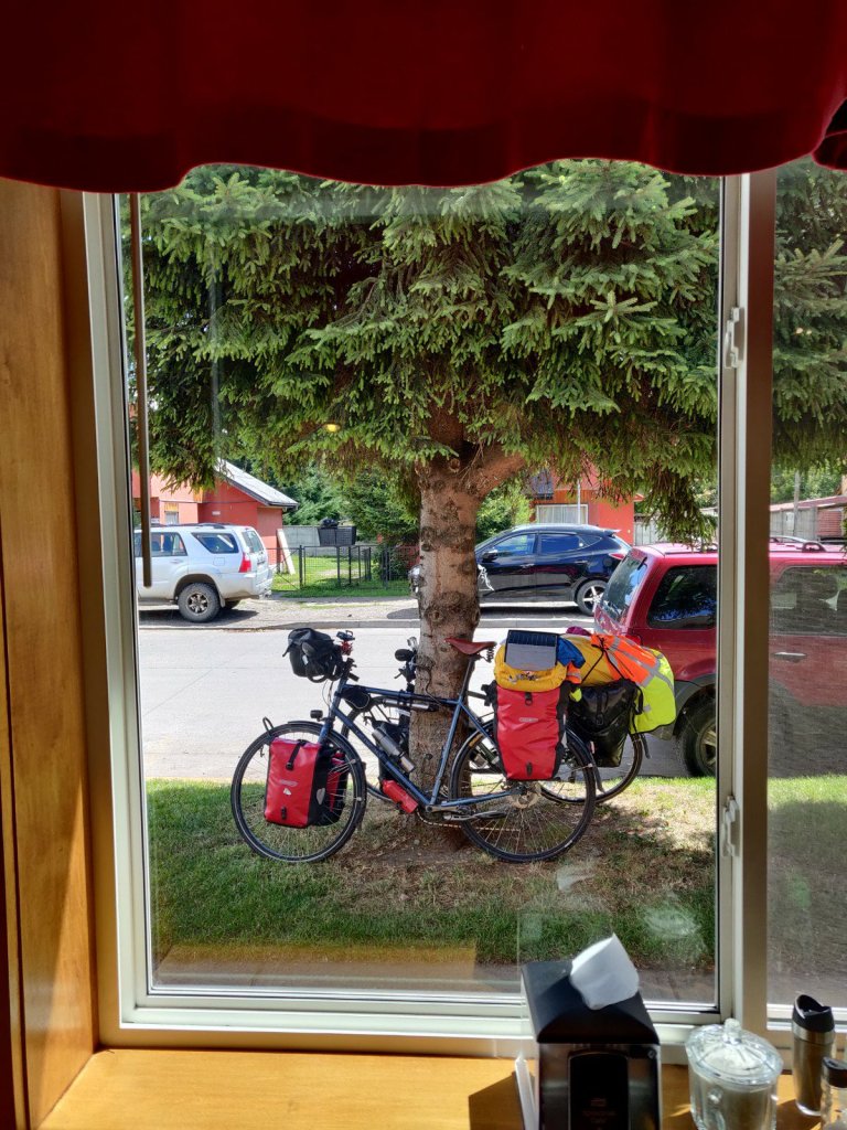 Back in the village we made enquiries about the upcoming road closure and possible buses to enable a swift passage through the roadworks uphill and against a headwind. The tourist information hut confirmed that buses did run in the morning and afternoon, by several companies, but she couldn’t say exactly when they might arrive or leave, or whether bicycles were permitted on board. We decided to continue by bicycle but stop at a well reviewed campsite 11 km down the road to see if we could hitch a ride.