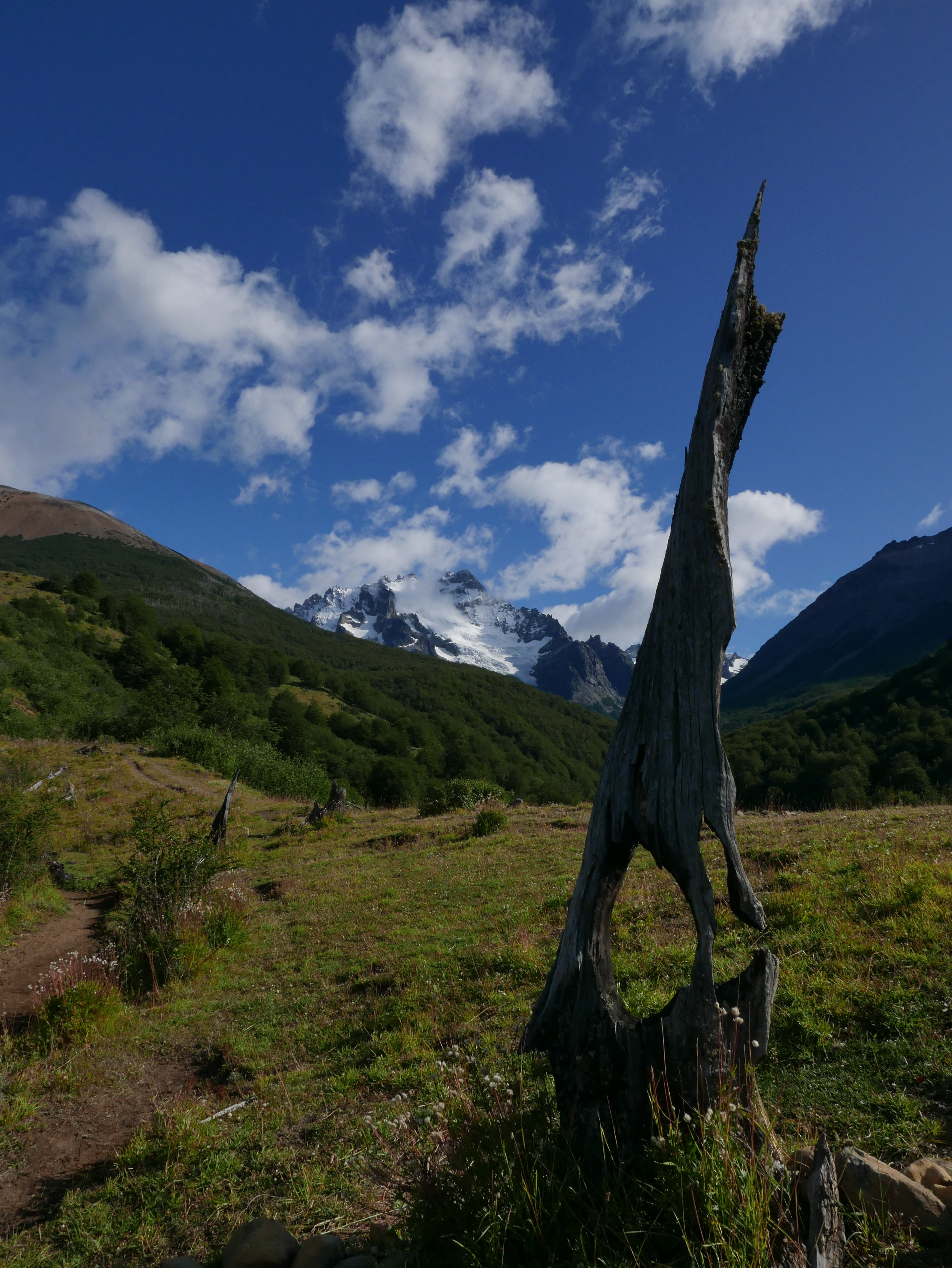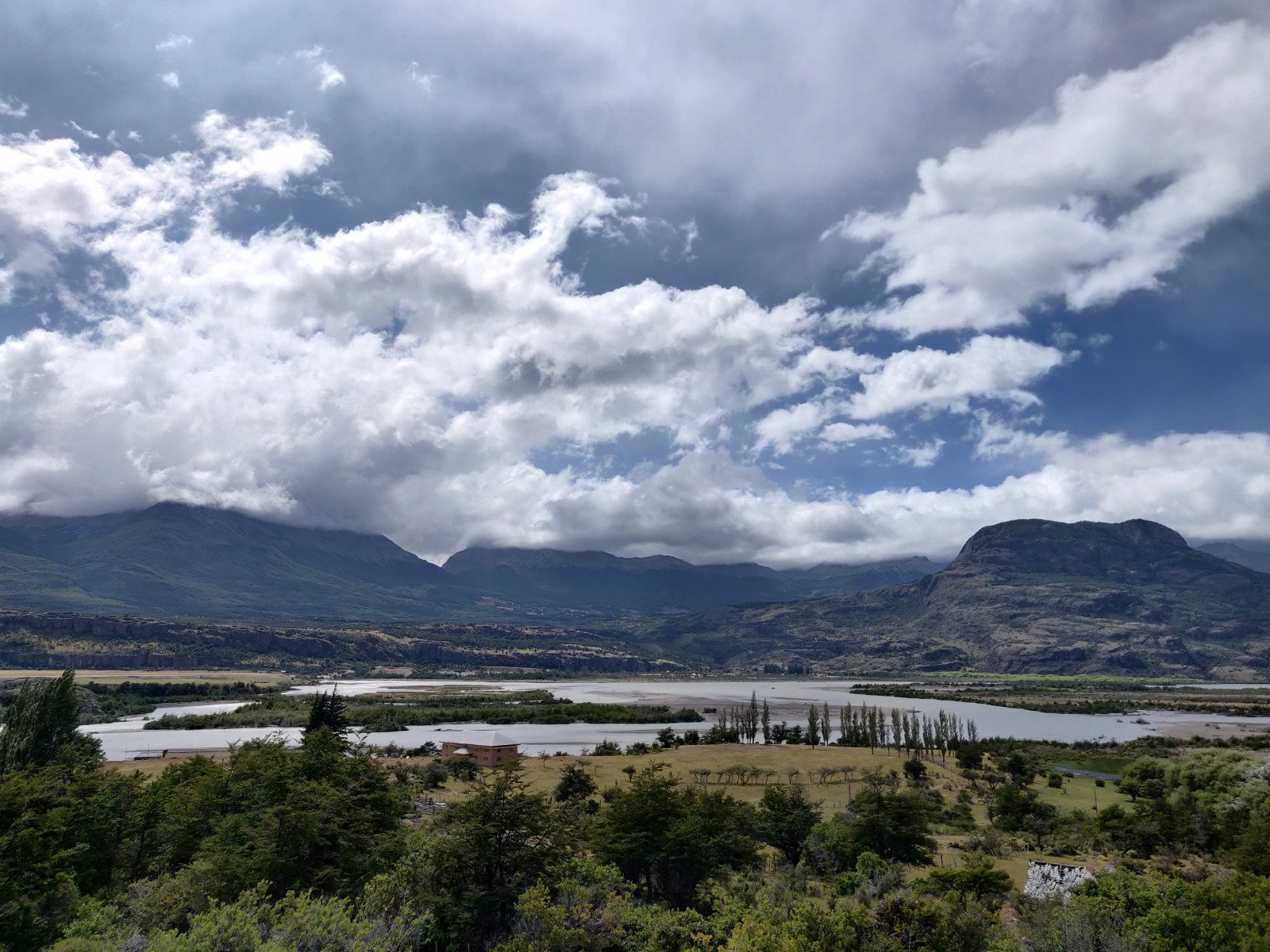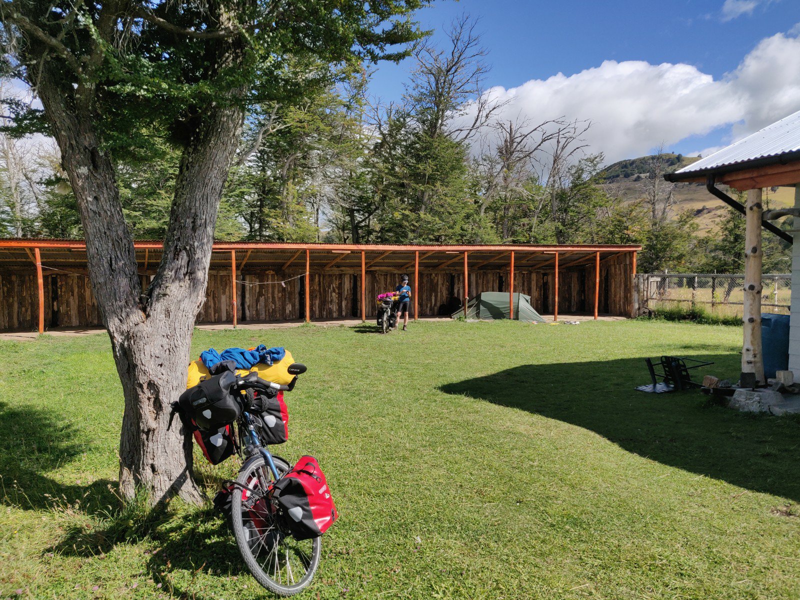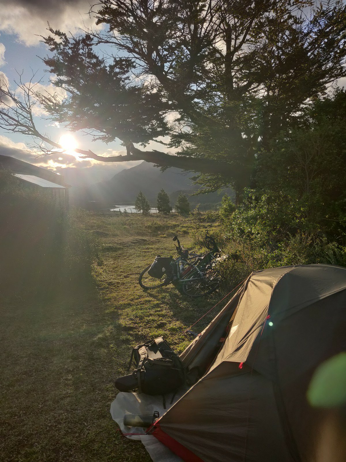 We arrived at the first and potentially best camping option at around 8.30. With the most spectacular view of the mountain Cerro Castillo, it comprised several bell tents for glamping with a common living room attached to the owners house and sheltered outdoor space for cooking. We looked around for a sheltered spot but the only one was already taken. As we started to eye up another space behind one of the bell tents the owner appeared and said we couldn’t go there as it was for their private use. The door being on the opposite side of was hard to see what use this might be but we asked where else we might go for wind shelter. The owner pointed vaguely to a spot by a tree which was doing a perfect impression of a wind tunnel. We looked at him incredulously and he said he would speak to his girlfriend.