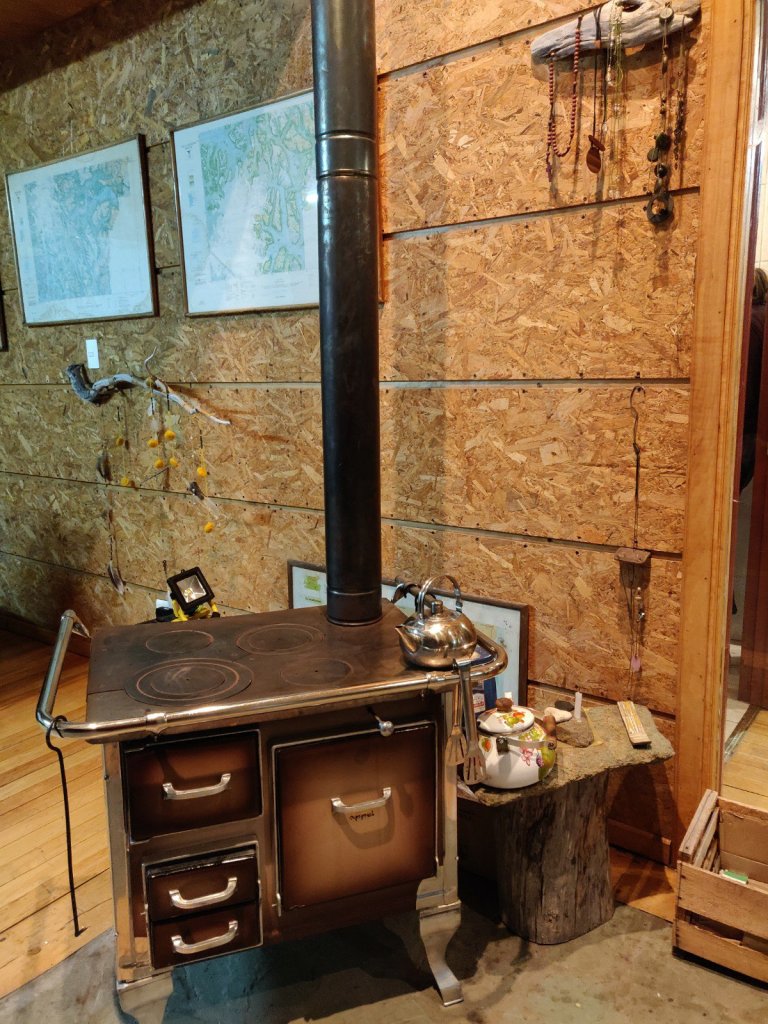 5 minutes later as we were preparing to try another campsite he came back and said we could go behind the bell tent as no one was booked in tonight but would have to move tomorrow. We thanked him and got set up, by which time it was dark and cold. There was little space inside to cook but we were shown a work surface by the only sink, which seemed to be shared between guests and the family. Cooking was tricky but at last we were inside and able to enjoy the living dining room, which was beautiful.