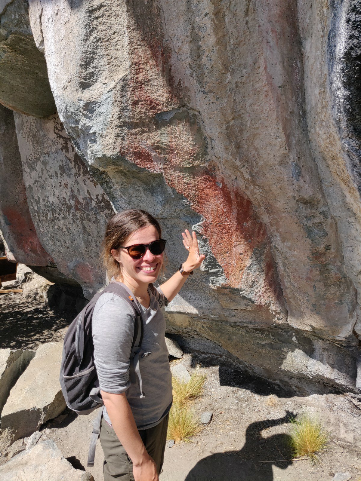 After some rain in the night, Saturday dawned bright and we met our tent neighbours who were also cycling south and had passed us the day before. It turned out the female cyclist had come off her bike on one of the downhill unpaved obstacles but fortunately was ok other than a strained knee. Nonetheless they planned to climb the Cerro Castillo viewpoint today, being on a tight timescale. We stretched our aching legs and decided to postpone the 1200m climb for tomorrow and today explore the cave of the hands instead.