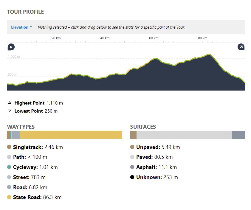 97.4 km Uphill 1,460 m; Downhill 1,420 m
