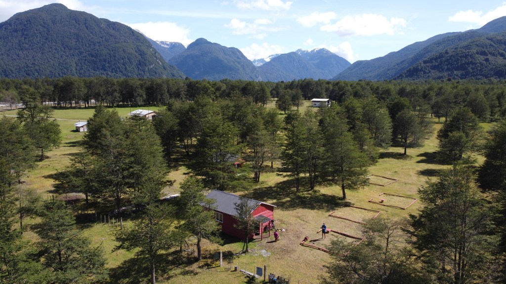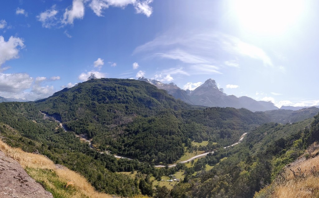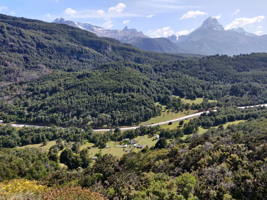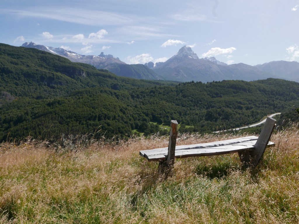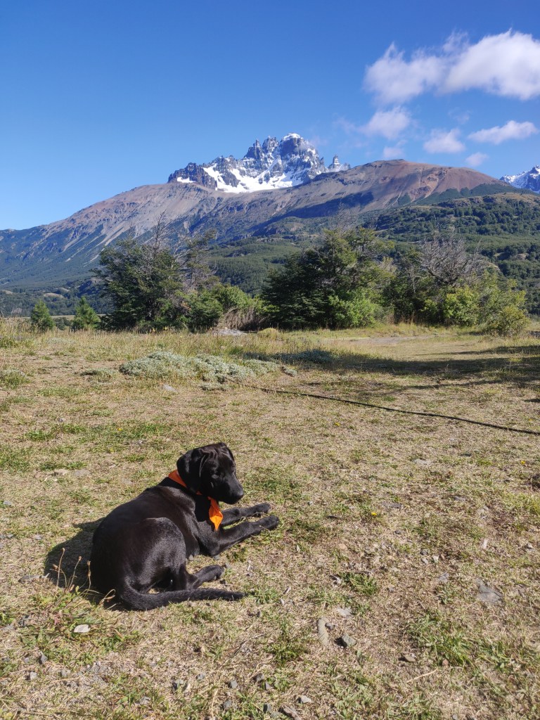 After a bit of a lie in, we ate and set off up the hill to the Mirador, the farm collie excited to join us and leading the way. After a steep but relatively short climb up a good path we found a bench overlooking the mountains to the northeast, including a distant view of the Cerro Castillo. Hannah tried it some time lapse photography whilst Robbie tried the drone before deciding it was too windy to risk it.