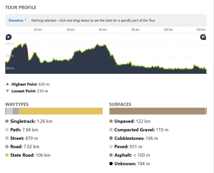 123 km; Uphill 1,570 m; Downhill 1,690 m