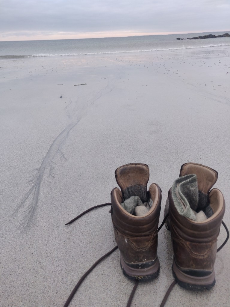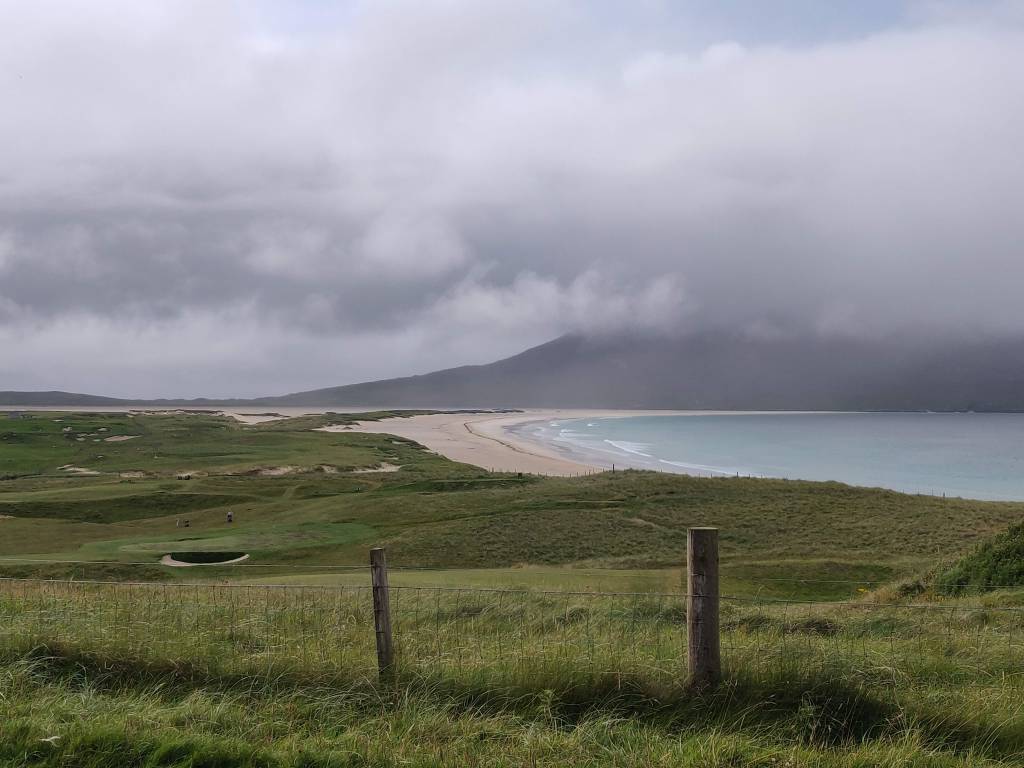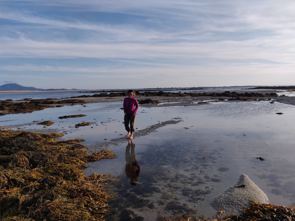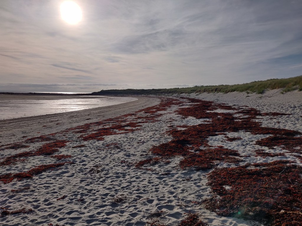 We continued west past Vassay island, its historical remains accessible on foot at low tide, and skirting Ben Scolpaig. Sadly the Wee Cottage Kitchen food van was closed on the Sunday, but views of beautiful crofts and black highland cows kept our spirits up as we turned south. We turned off the main road at 1pm and found our way to the west coast, whist sand beaches and the Balranald Nature Reserve.